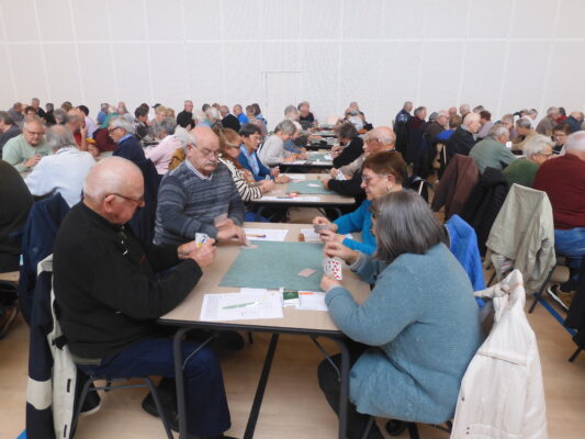 Lundi 27 octobre 2025, 82 équipes, soit 164 joueurs, étaient présentes pour ce dernier concours de belote 2025, avec « partage du cochon ».